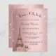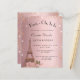 Een moderne, stijlvolle en glamoureuze uitnodiging voor een Quinceañera, 15e verjaardagsfeest, parisiaans thema. Een lichtroze metalen achtergrond met roos gouden faux glitter sparkles en de Eiffeltoren met enkele bloemen. De naam wordt geschreven met een modern handgeschreven stijlmanuscript met letters. Pas je partijgegevens aan en voeg deze toe.