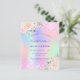 Een meisje en vrouwelijk Quinceañera, 15e verjaardag uitnodiging. Voorzijde: Een regenboog, holografische achtergrond in paarse, roze, groen gekleurde munt, goud van roos. Gedemoreerd met wazig roze faux glitter, sparkles. Pas een naam en partijdetails aan en voeg deze toe. De naam wordt geschreven met een handgeschreven stijlmanuscript, paarse gekleurde brieven.