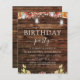 Budget Birthday Party Rustic Country Outdoor op Dark Wood met Bourgogne, Oranje en gele zonnebloemen met Mason Jars op String Light Autumn of Herfst Birthday Party Invitations - bevat prachtige en elegante scripttypografie voor de speciale verjaardagscypografie.