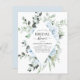Budget Dusty Blue Floral Rozen en Eucalyptus Botanical Greenery Waterverf Spring of Summer Wedding Bridal Shower Invitations - omvat prachtige en elegante scripttypografie met moderne tropische botanische bloemen en groen voor de speciale viering van de dag van de bruiloft.