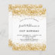 Voor een elegante 21ste (of om het even welke leeftijd) verjaardag. Een stijlvolle witte achtergrond. Gedemoreerd met faux goudglitterstof. Geef een persoonlijke naam, leeftijd en partijgegevens op en voeg deze toe. De naam wordt geschreven met een handgeschreven stijlmanuscript