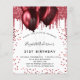 Voor een elegante 21ste (of om het even welke leeftijd) verjaardag. Een stijlvolle witte achtergrond. Gedecorreerd met rode nevel en ballonnen. Geef een persoonlijke naam, leeftijd en partijgegevens op en voeg deze toe. De naam wordt geschreven met een handgeschreven stijlmanuscript
