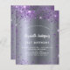 Een moderne, stijlvolle en glamoureuze uitnodiging voor een 21ste (of om het even welke leeftijd) verjaardagsfeestje. Een donkere faux zilveren vormende achtergrond met paarse faux glitter, sparkles. De naam wordt geschreven met een modern handgeschreven stijlmanuscript met letters. Pas je partijgegevens aan en voeg deze toe.
