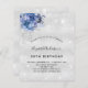 Voor een elegante 18e (of om het even welke leeftijd) verjaardag. Een stijlvolle faux zilveren metalen achtergrond. Verkleurd met faux glitter stof en blauwe florals. Geef een persoonlijke naam, leeftijd en partijgegevens op en voeg deze toe. De naam wordt geschreven met een handgeschreven stijlmanuscript
