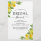 De Waterverf Lemon en Foliage Citrus Summer of Spring Wedding Bridal Shower Invitations voor budgettaire Vrijgezellenfeest - bevat prachtige en elegante scripttypografie voor de speciale Bride die wordt gevierd.