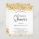 Een stijlvolle witte achtergrond. Gedemoreerd met faux goudglitterstof. Pas een naam en partijdetails aan en voeg deze toe. De naam wordt geschreven met een handgeschreven stijlmanuscript
