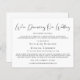 De optie van de de trouwaankondiging van de begroting als de omstandigheden vereisen dat u uw bruiloft vermindert. Deze moderne, eenvoudige, maar elegante, zwarte en witte kleinere, kleinere, kleinere trouwaankondiging is voorzien van de functie "We Downsizing Our Wedding" in een stijlvolle kalligrafie. U kunt het trouwbericht eenvoudig personaliseren en virtuele trouwevenementen, toekomstige feestelijkheden en informatie over de trouwwebsite toevoegen. Ook beschikbaar op andere papierproducten, zoals een 5X7 platte kaartaankondiging of een briefkaart.