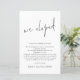 Een GROTER alternatief van 5,5 x 8,5 inch voor een voordelige prijs. HOUD ER REKENING MEE DAT DE GELEVERDE ENVELOPPEN IETS GROTER ZIJN DAN DE INVITE BIJ 6,75 "x 9" bij benadering. Budget We Eloped Script Elopement aankondiging. Met een QR-code naar een pagina waar uw gasten uw trouwfoto's op de achterkant kunnen zien. Uw QR-code wordt automatisch gegenereerd om de voorbeeldcode in het ontwerp bij te werken, wanneer u de voorbeeldURL in de sjabloon eenvoudig wijzigt met uw eigen URL. Of u kunt deze verwijderen als dit niet nodig is. Een informeel script voor We Eloped en de rest van de tekst kun je gemakkelijk personaliseren.
