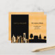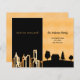 Een elegante en minimalistische bewegende annoucementkaart van een stadsleven naar een plattelandsleven. Zwart en faux goud met een skyline in de stad en een thuisland. Pas uw nieuwe adres en bericht aan uw familie en vrienden aan en voeg deze toe.