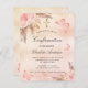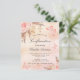 Een roos gouden, wazige roze roze faux metallische achtergrond. Gedecormeerd met roos goud en roze floralen, rozen, pamapgras, vlinders en een gouden kruis. Pas een naam en de details aan en voeg deze toe.