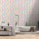 Bij het ophangen van behang kun je de gekleurde driehoeken op elkaar afstemmen, of, zoals de titel suggereert, je kunt ervoor kiezen om de middelste rij niet te laten kloppen met de boven- en onderkant, waardoor een horizontale rand ontstaat.