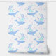 Behang met een schattig patroon van leuke afbeeldingen van de zeebodem, koraal, walvis, zeemeermin, zeester.