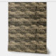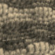 Rimpelpatroon in haakwerk, heeft een donkere band in de buurt van het midden die is omlijnd met tinten van geelbruine strepen, een lichte streep eronder en een gemiddelde tint aan de boven- en onderkant. Kleureffect ontstaat door het filteren van het originele afbeelding groen-wit met een sepia filter.