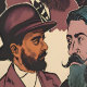 Een tekening van bebaarde heren in stijl in een authentiek kleurenpalet.