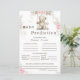 Laat het raadspel beginnen! Met onze lieve teddybeer op een schommel en delicate roze bloemen, is deze voorspellingskaart gemaakt voor glimlachen en zoete herinneringen. Gasten zullen het leuk vinden om alle kleine details over de nieuwe kleine bundel vreugde te raden!