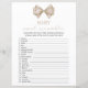 Dit baby showers woord scramble spel is perfect voor een baby shower of baby sprinkle. Dit woord scramble spel heeft een boho beige waterverf coquette boog op de voor- en achterkant. Perfect voor een genderneutrale viering. U kunt dit ontwerp personaliseren door te klikken op "Personaliseer deze sjabloon" of als u het lettertype, de kleuren wilt wijzigen of de ontwerpelementen op een andere manier wilt rangschikken, kunt u klikken op "Bewerken met behulp van Design Tool". Antwoordsleutel: 1. Luier 2. Bassinet 3. Fles 4. Wieg 5. Fopspeen 6. Tabel 7 wijzigen. Gevuld dier 8. Wandelwagen 9. Rubber Ducky 10. Deken 11. Bijtring 12. formule 13. Kinderstoel 14. Mobiel 15. Thermometer 16. Baby 17. Melk 18. Booties 19. Een-kant 20. Knuffel Beer