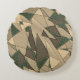 Beige driehoekige snede op de donkergroene achterg rond kussen