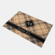 Beige en bruine tartan-vormgeving. Naadloos patroon. Aangepaste tekst en monogram.