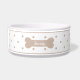 Beige Stippen op Wit Met Hondenbot & Naam Voerbakje