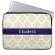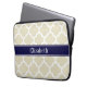 Beige Wht Moroccan #5 Navy Blue Name Monogram Laptop Sleeve