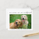 Een budgetvriendelijke aankondiging van het verloving met een foto van uw huisdieren: "Onze mensen worden getrouwd" in een mix van eenvoudige typografie en een stijlvol script (u kunt zich aanpassen aan "Mijn mens" voor één kat of hond), uw voornamen en uw trouwlocatie en datum indien gewenst. Voor de achterkant, pas uw bericht van de de aankondiging van het verloving aan, om het even welk sparen de datumdetails, en voeg uw namen (en de namen van huisdieren ook) in een handtekening-als manuscript toe.