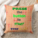 De groene kleur van pers een knoop om uw leven over lichte oranje kleurenachtergrond met getoonde gepatterde S en weinig zachte rode vlekken te beginnen. De boodschap herinnert ons eraan dat we de volledige controle hebben om te stoppen en ons leven te beginnen.