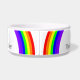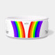 Een hondenbroodje met de naam en de "Beste hond van de Ever" heeft een regenboogontwerp op een witte kom; HAMbyWhiteGlove.