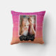 Decoratief gooien kussen in een kleurrijk "beste vrienden" design met een foto van u en uw beste vriend. Dit ontwerp wordt herhaald aan beide zijden van de kussen.