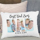 Dit kussen voor papa is versierd met drie fotosjablonen in de vorm van het woord DAD. Er staat 'Beste vader ooit' en het jaar. De tekst en de foto's zijn aanpasbaar.