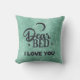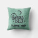 Fun typografiestijl: grafische functies "Beste bed, ik hou van je" tekst op aqua tint vuurvliegjes en faux burlap achtergrond