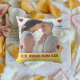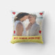 Modern, trendy accentkussen voor je bonusmoeder met een foto die je aan de voorkant kunt personaliseren, opgehouden koelkastmagneet-stijl uit de hoeken door vier harten, en de aanpasbare tekst "BEST BONUS MOM EVER!" Geweldig cadeau voor je stiefmoeder / pleegmoeder / tweede moeder op Moederdag of voor haar verjaardag. Merk op dat je dit fotokussen ook kunt personaliseren voor je favoriete tante, je oma, enz. Op een gele achtergrond.