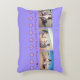 Schattige, modern en elegant accentkussen voor Moederdag voor je bonusmoeder (stiefmoeder / pleegmoeder / tweede moeder), met een collage van 3 horizontale foto's die je kunt personaliseren en waarop een moeder en een tienerdochter, een rij paarse bloemen (gegroepeerd een donkerder en een lichter), en een aanpasbare tekst met een naam die je kunt personaliseren en de woorden "Beste bonusmoeder EV ♥ R" (die je kunt wijzigen in "Beste moeder ooit" / "Beste mama ooit" / of iets anders) zijn te zien. Op een maagdenpalmblauwe achtergrond.