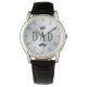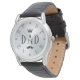Vaderdag polshorloge met het originele ontwerp BEST DAD OOIT op de achtergrond van een faux zilveren gradiënt. De elegante zwarte letters van de woorden BEST en OOIT worden gevestigd op de wijzerplaat in plaats van de aantallen. Het woord DAD bevindt zich in het midden, boven de kroon, en onder de snor. U kunt de achtergrondkleur, de letterkleur, het lettertype en meer wijzigen door op de knop "Personaliseren" te klikken en vervolgens op het opschrift "Klik om verder aan te passen".