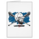 Vet lacrosse-ontwerp met lacrosse helm en gekruiste lacrosse stokken met blauwe achtergrond. LACROSSE met rood x kruis. Geweldig lacrosse cadeau voor lacrosse spelers en ventilatoren!