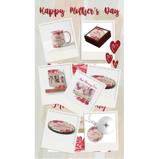 Moderne trendy bloemige lijst van rozen in rode, roze en groene kleuren en fotocollage voor je beste mama ooit. Gewoon perfect voor een geliefde en moderne moeder. Personaliseer je beste foto's met mam en namen.