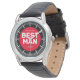 Best Man huwelijkscadeau horloge van bruidegom tot bruidsjonkers. Cool modern design met grote gedurfde typografie. Manly zwart horloge met zwart lederen polsbandje. Voeg uw eigen persoonlijke naam en aangepaste datum toe. Geen nummer wijzerplaat bord met aanpasbare achtergrondkleuren. Unieke mannelijke cadeaus voor jongens die gaan trouwen. Creëer Een aandenken tijdstuk voor vriend, broer, bode, groomsman, collega, collega, familielid, neef, neef, vriend enz. Geweldig voor mijn groomsman verzoek, verloving of vrijgezellenfeest verrassing. Aangepaste grote oversize 42 mm horloges voor mannen. Rode en zwarte kleurencombinatie. Een van een soort feestgunsten voor jongens.
