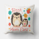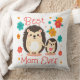 Schattig kussen voor een moederdag-traktatie met een schattige illustratie van een mama egel die de hand van haar baby egel vasthoudt. De kleine egel houdt een roze liefdeshart vast. Beide egels hebben donkerbruine stekels en een bruin lichaam, elk met roze wangen, glanzende ogen en een kleine glimlach. Drijvend rond boven de schattige dieren zijn kleurrijke bloemen in blauw, geel en rood. Leuk roze lettertype boven en onder de illustratie staat 'Best Mom Ever'. De achterzijde van het kussen is een effen roze kleur.