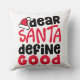 Klaar voor wat feestelijk plezier? Bekijk mijn populaire 'Dear Santa Define Good' ontwerp in trendy rood en zwart. Perfect voor het toevoegen van wat vakantie flair aan uw garderobe of het opfleuren van uw interieur met dit schattige gooi kussen. Stap in de vakantie geest met dit speelse ontwerp en spreid wat vrolijkheid!