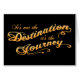 "Het is niet de bestemming het is de reis," tekst in Zware scriptletters, blauw of oranje, op t-shirts, zweten, prints, een soort van geschenk.