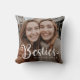 Gooi het kussen met uw aangepaste foto's en de tekst "Besties" met aangepaste namen hieronder.
