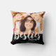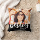 Moderne besties foto gooien kussen met namen. Vervang de foto door uw eigen foto en verander de tekst. Foto en tekst op de voor- en achterkant van het kussen. Het is een geweldig cadeau-idee. Witte typografie op zwarte achtergrond.
