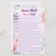 Voeg een leuke en gedenkwaardige activiteit toe aan uw evenement met deze elegante tweezijdige spelkaart. Deze kaart heeft een grillig waterverf bloemontwerp en een charmante galah papegaai op de rug. De naam op de achterkant van de kaart (scroll naar beneden om de plaatsaanduiding te vinden), kleuren, de vragen en lettertypen zijn klaar voor u om aan te passen, waardoor het een perfecte manier is om uw gasten te vermaken en een heerlijke aanvulling op uw feestbriefpapier. Ontdek meer bijpassende producten uit dit collectie! ©Susanne Sachers - Sunny Mind 🌞