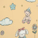 Betoverende kinderkamer ontwerp. Het beschikt over charmante illustraties van kinderen die elkaar begroeten, schommels en levendige ballonnen die hoog tussen de wolken zweven. Achtergrond perzik.