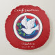 Bevestiging Kleurrijke Duif op Rode Achtergrond Rond Kussen