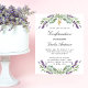 Een witte achtergrond versierd met lavendere bloemen en eucalyptusgroen. Personaliseer en een naam en details. Achterzijde: lavender, violette gekleurde achtergrond. 1 blad = 1 uitnodiging