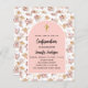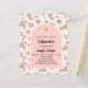 Een boogpatroon op een lijst van pampasgras en roze bloemen en een gouden kruis. Personaliseer en voeg een naam en details toe. 1 vel = 1 uitnodiging afgedrukt rand tot rand.