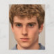 Een stoffige blauwe bevestiging bedankt je kaart voor een jongen. Op een stoffige blauwe rechthoekige achtergrond, heeft het een faux zilveren folie die binnen stoffige blauwe teksten op witte achtergrond heeft. De woorden "Dank u"en de naam worden geschreven in een elegant kalligrafisch manuscript; de rest in petten. Op de rug is er een placeholder foto van een jongen, van Pixabay, die computer (geen echte persoon) wordt geproduceerd en vrij voor commercieel gebruik is.
