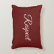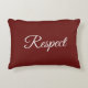Een rode accuskussen shows een witte scripted tekst resulterend in een bevestiging voor Respect. Het stevige rood-gekleurde kussen staat het aanpassen van de vullingskleur evenals de manuscripttekst, de doopvont, de doopvontgrootte, en manuscriptkleur toe. Het is een prachtig idee om een vriend een bevestigende kussen te geven. Voor hulp of vragen over aangepast ontwerp kunt u contact met ons opnemen op https://t.me/kbmd3signs_chat.