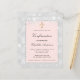 Faux zilver en blush roze gekleurde achtergrond versierd met faux zilver glitter. Personaliseer en voeg een naam en de details toe. Zwarte letters.
