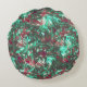 Bevlekt aquamarijn en rood, bevuild met dof zwart rond kussen